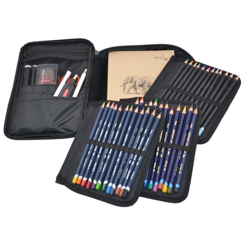 Avec une capacité de 72 crayons, répartis sur 3 volets amovibles, cette mallette offre une organisation optimale pour tous vos outils de dessin. Son grand espace de rangement vous permet également d'accueillir un carnet A5, et ses multiples poches offrent des espaces de rangements pour des pinceaux, des gommes et bien d'autres accessoires.